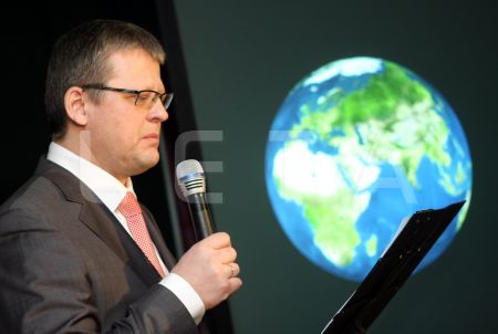 Лауреат награды им. В. Пурвитиса Андрис Эглитис (в центре), ...