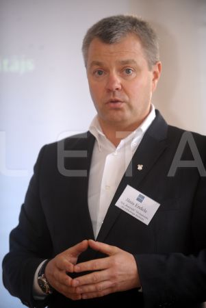 Министр финансов Андрис Вилкс (слева), премьер-министр Валдис ...