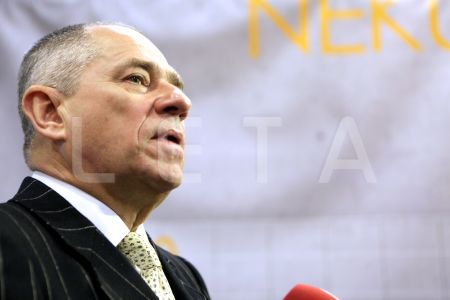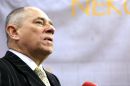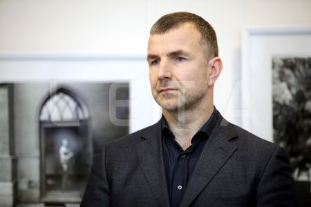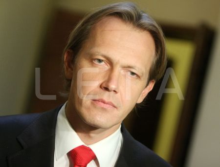Министр обороны Артис Пабрикс выступает на внешнеполитических дебатах ...