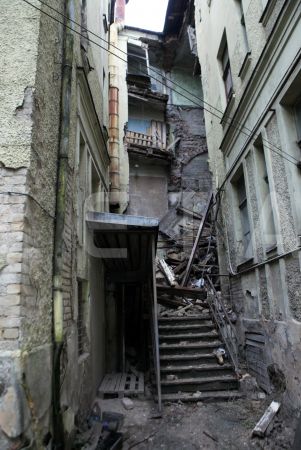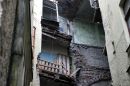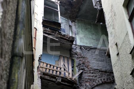 Частично обрушившаяся стена четырехэтажного дома на ул. Пейтавас
