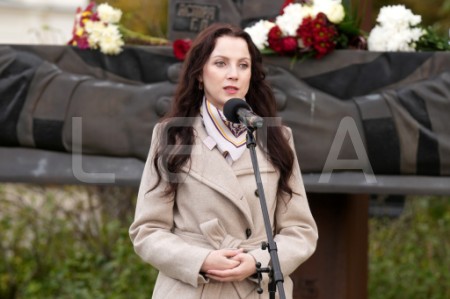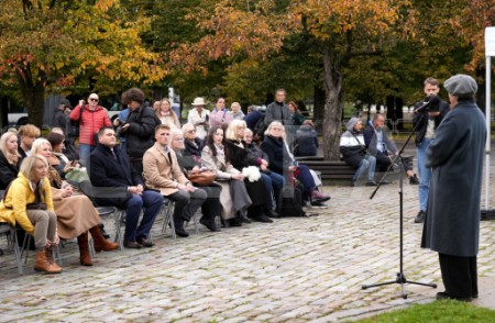 Laila Ilze Purmaliete (centrā) uzstājas Valsts valodas dienai ...