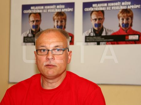 Mediķu arodbiedrības rīkotās sociālās kampaņas informatīvais plakāts.