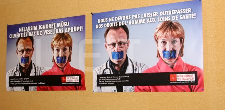 Mediķu arodbiedrības rīkotās sociālās kampaņas informatīvie plakāti.