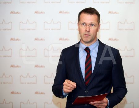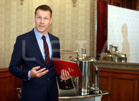 AS "Aldaris" valdes priekšsēdētājs Veli Pekka Tennila preses brīfingā ...