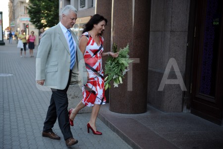 Saeimas deputāts Valdis Zatlers ar kundzi Lilitu ierodas uz Rīgas un ...