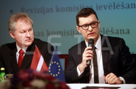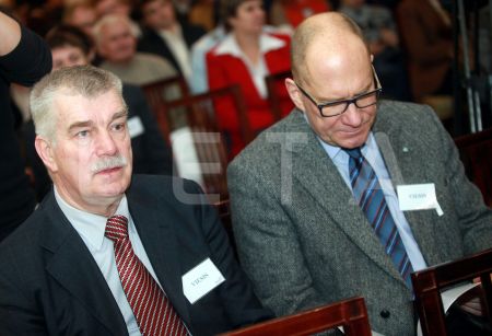 Latvijas Pensionāru federācijas vadītājs Andris Siliņš (no kreisās) ...
