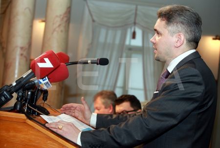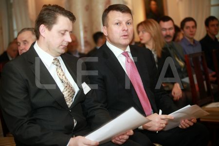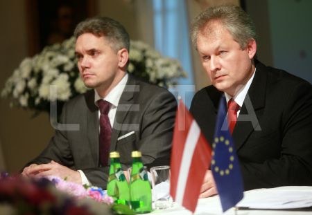 Partijas "Vienoti Latvijai" biedrs Ainārs Šlesers (no kreisās) un ...