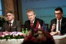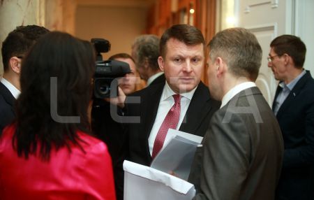 Partijas "Vienoti Latvijai" biedrs Ainārs Šlesers (no labās) piedalās ...