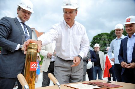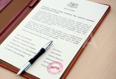 Rīgas domes priekšsēdētājs Nils Ušakovs (no kreisās) paraksta ...