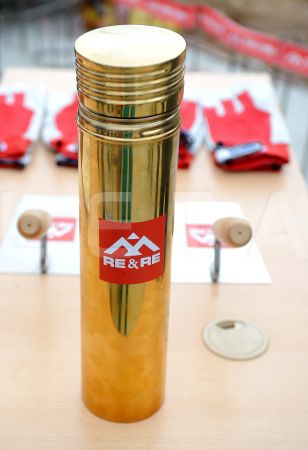 Kapsula ar vēstījumu nākamajām paudzēm iemūrēšanai mājas pamatos, ...
