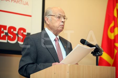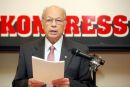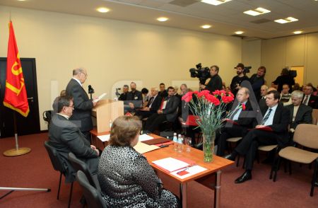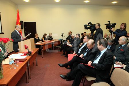 Eiropas Parlamenta deputāts Alfrēds Rubiks uzrunā klātesošos Latvijas ...