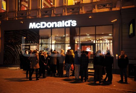 Cilvēki pie ātrās ēšanas restorāna "McDonald's", pēc Jaunā gada ...