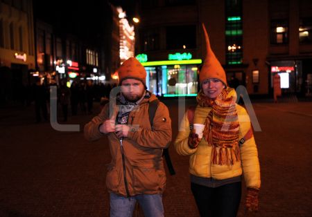 Cilvēki Kaļķu ielā pēc Jaunā gada sagaidīšanas svinībām.
