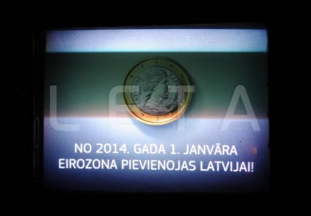 Uzraksts "Citadeles" bankas bankomātā pēc Latvijas pievienošanās ...
