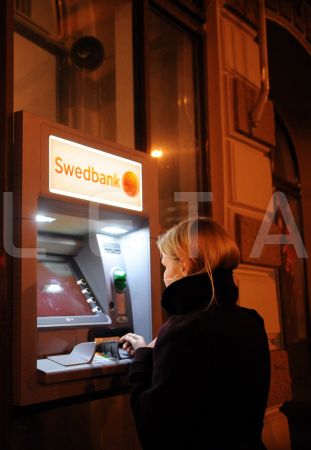 Jauniete izņem eiro banknotes no "Swedbank" bankomāta pēc Latvijas ...