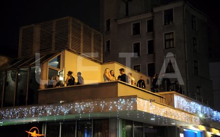 Cilvēki restorānā "Kaļķu vārti" Jaunā gada sagaidīšanas svinību laikā.