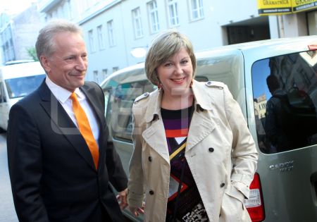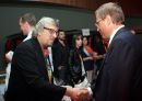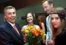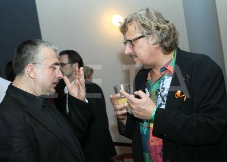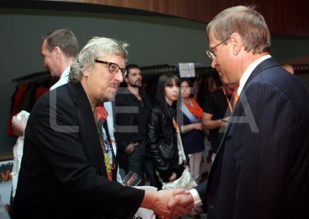 Komponists Zigmārs Liepiņš (no kreisās) un Rīgas domes priekšsēdētāja ...