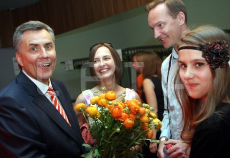 Mūziķis un producents Guntars Račs ar kundzi (no kreisās) un ...