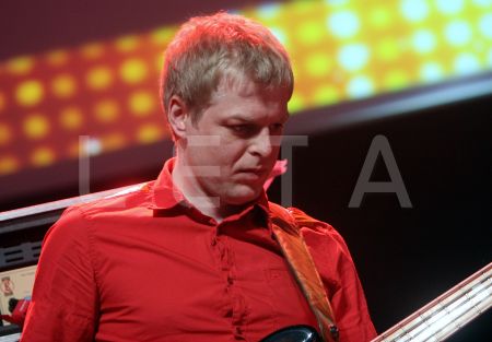 Grupas "Labvēlīgais tips" mūziķis Normunds Jakušonoks uzstājas "Radio ...