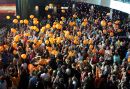 Cilvēki ierodas uz "Radio SWH" 20 gadu jubilejas svinībām koncertzālē ...
