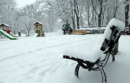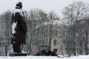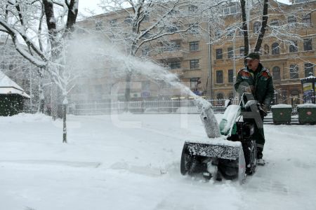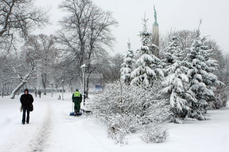 Sniega tīrīšana Vērmanes dārzā.