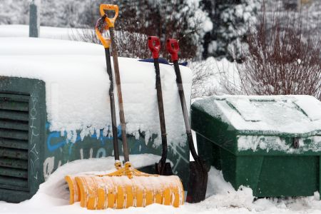 Sētnieku darba rīki Kronvalda parkā.