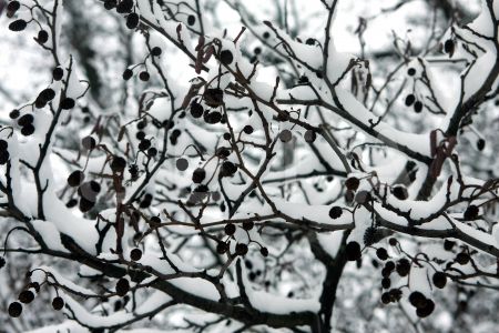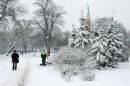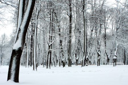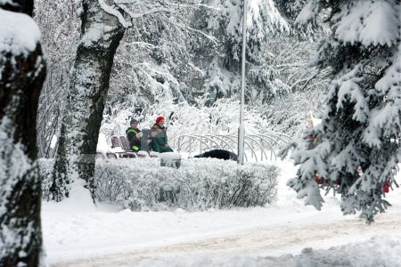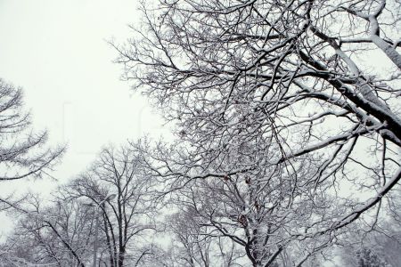 Apsniguši koki Viesturdārzā.