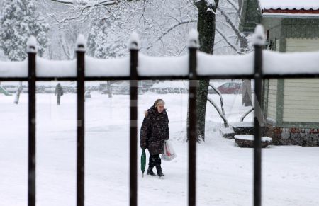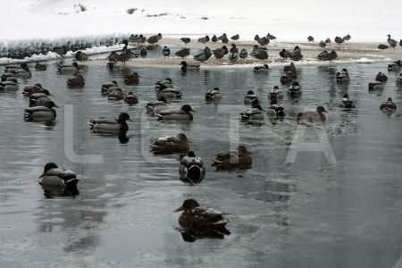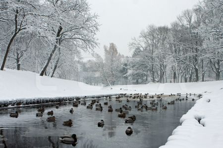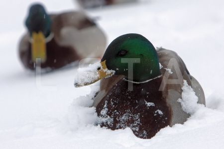 Pīle sniegā.