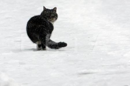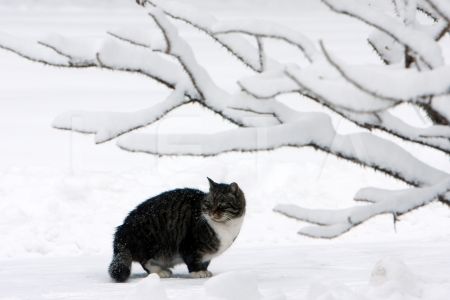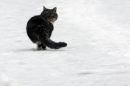 Kaķis sniegā.