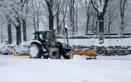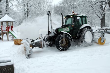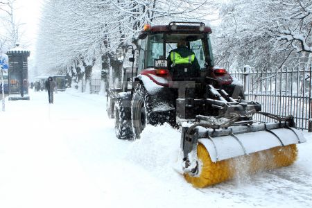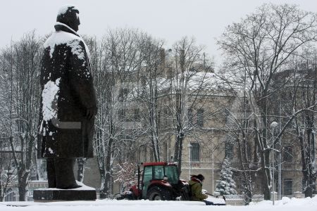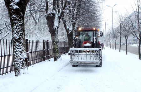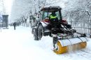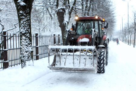 Traktors tīra sniegu Raiņa bulvārī.