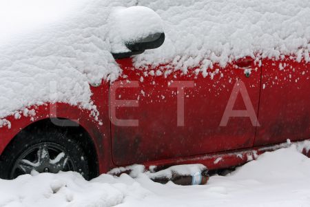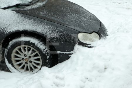 Apsniegusi automašīna.