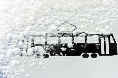 Apsnigusi sabiedriskā transporta pieturvietas zīme.