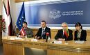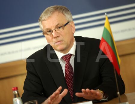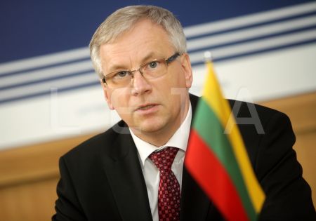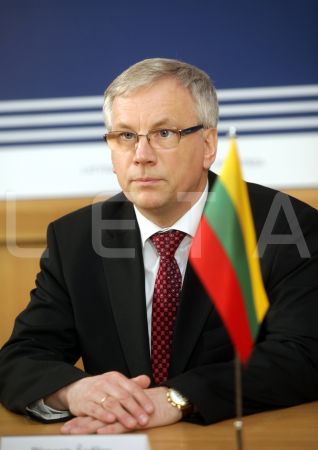 Lietuvas finanšu ministrs Rimants Šadžus piedalās preses konferencē ...