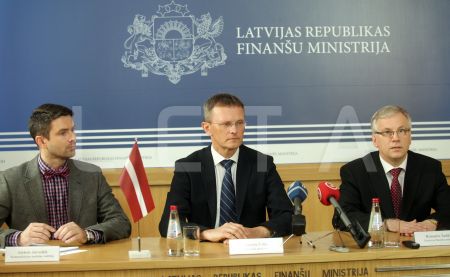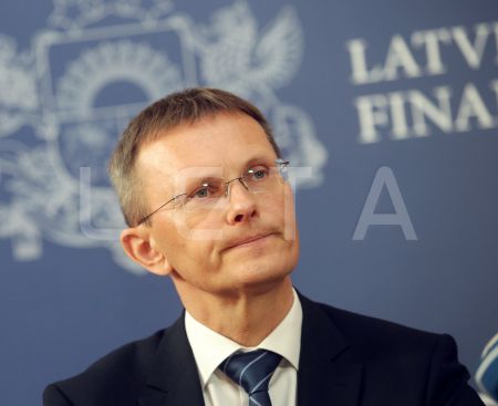 Latvijas finanšu ministrs Andris Vilks piedalās preses konferencē pēc ...