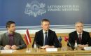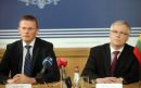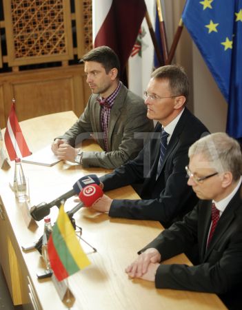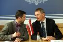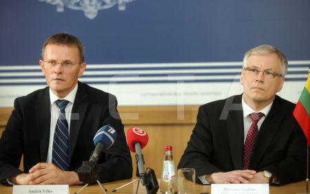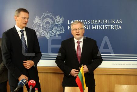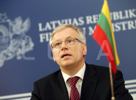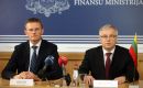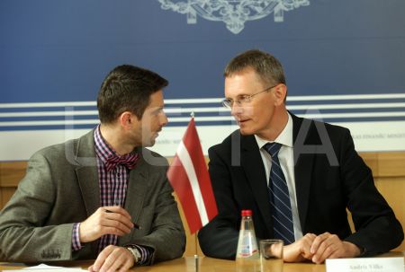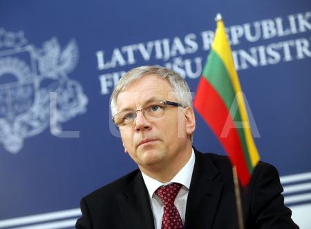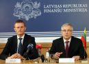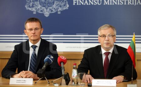 Latvijas finanšu ministrs Andris Vilks (no kreisās) un Lietuvas ...