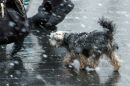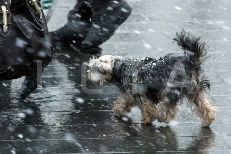 Suns sniegputeņa laikā Marijas ielā.