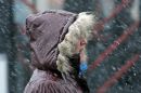 Sieviete sniegputeņa laikā Marijas ielā.