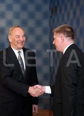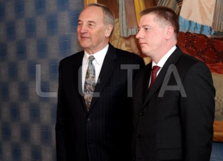 Valsts prezidents Andris Bērziņš (no kreisās) un satiksmes ministrs ...