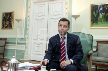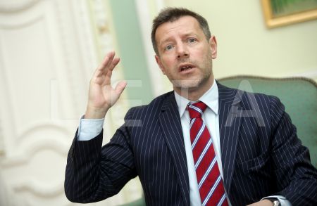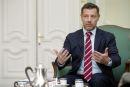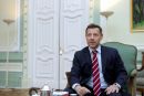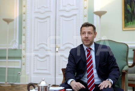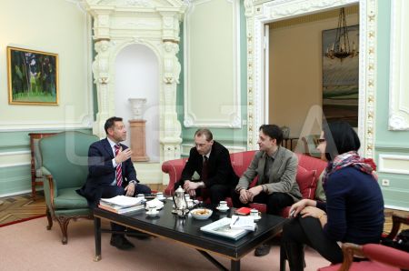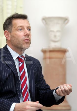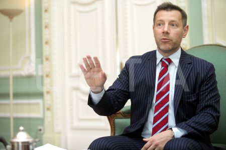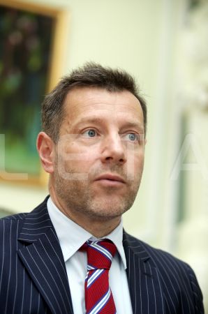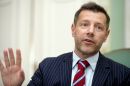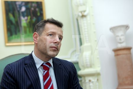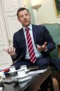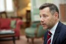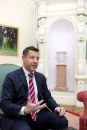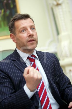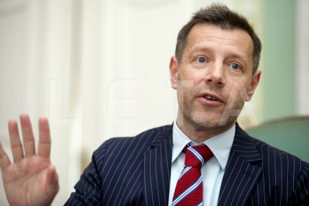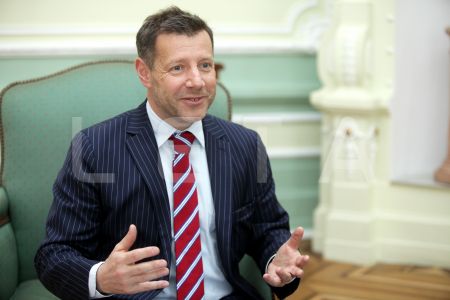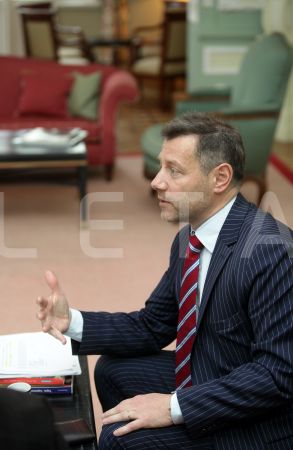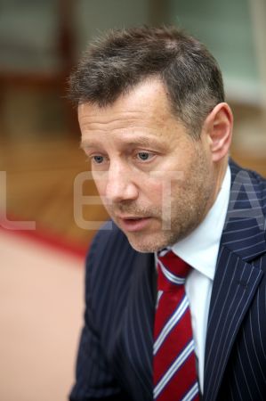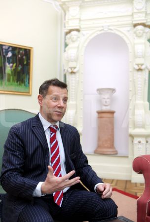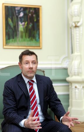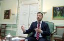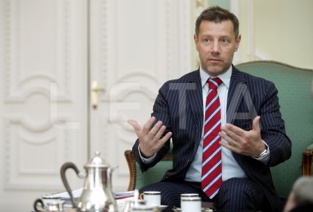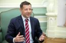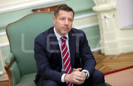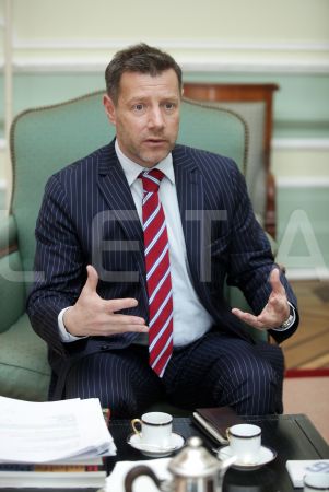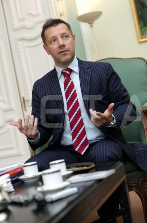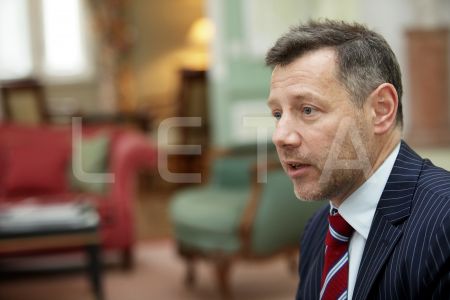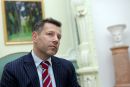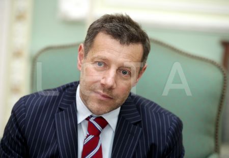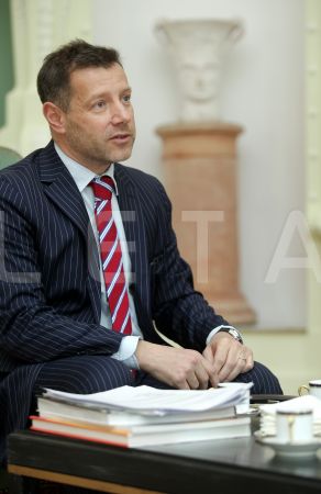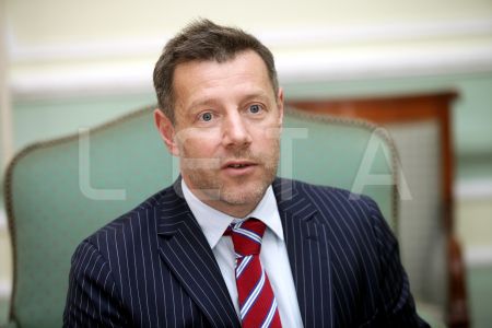 Francijas vēstnieks Latvijā Stefans Viskonti (no kreisās) intervijas ...