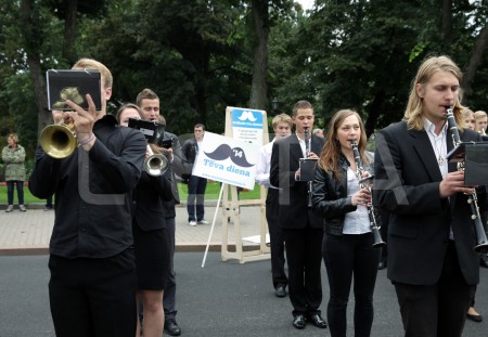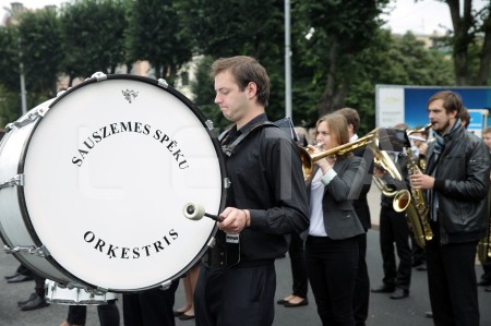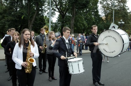 Sauszemes spēku orķestris uzstājas pie Brīvības pieminekļa, lai dotos ...