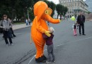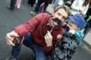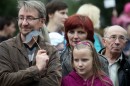 Cilvēki pulcējas pie Brīvības pieminekļa, lai dotos Tēva dienas ...
