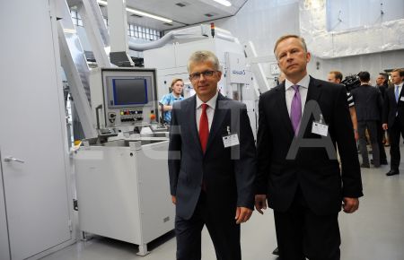 Latvijas Bankas prezidents Ilmārs Rimšēvičs (no labās) un kaltuves ...