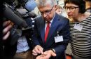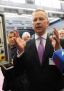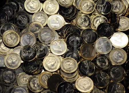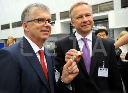 Latvijas Bankas prezidents Ilmārs Rimšēvičs ar jaunajām Latvijas eiro ...