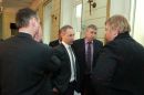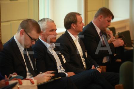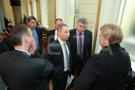 Būvniecības firmu pārstāvji pirms Ministru kabineta ārkārtas sēdes, ...