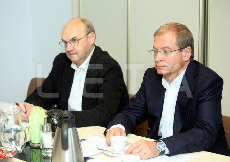 Finanšu ministrs Andris Vilks (no kreisās) un kompānijas "Brabantia" ...