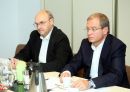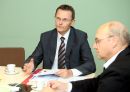 Auces novada domes priekšsēdētājs Gints Kaminskis (no kreisās), ...
