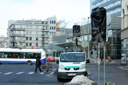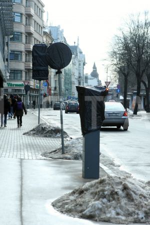 Aizsegtas ceļa zīmes un maksas stāvvietu automāti Elizabetes ielā ...
