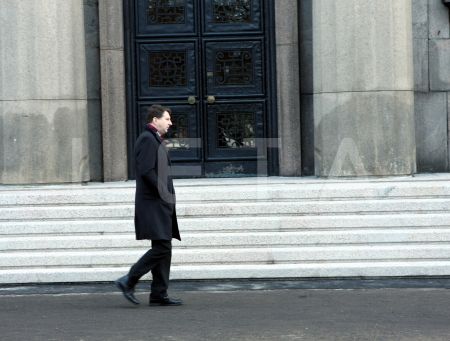 Saeimas deputāts Raimonds Vējonis pie Ministru kabineta ēkas.