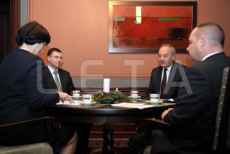 Ministru prezidents Valdis Dombrovskis tikšanās laikā ar Valsts ...