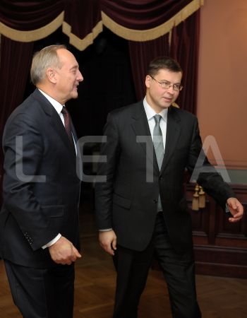 Valsts prezidents Andris Bērziņš (no kreisās) un Ministru prezidents ...